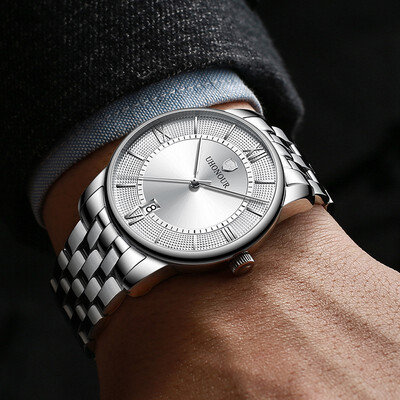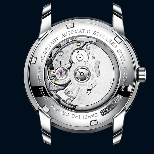 手表内置机械机芯,动力储存持久,经久耐用;不锈钢表壳和表带,坚固耐用且质地光滑,佩戴舒适不摩擦。
