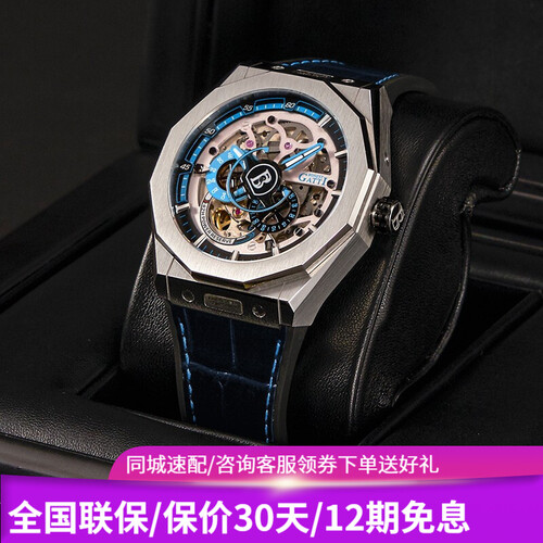 酷炫的多边形外形搭配不锈钢的机身材质,散发由内而外的潇洒魅力。以全镂空的表盘搭配,成就男士机械热梦。