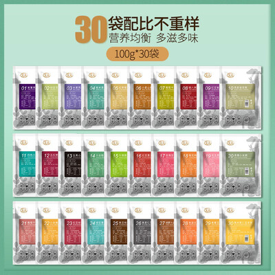 内含30袋五谷杂粮的粥米礼盒,可以进行均衡地营养搭配。多种口味可以随心搭配,多滋多味不会重样更受喜爱。