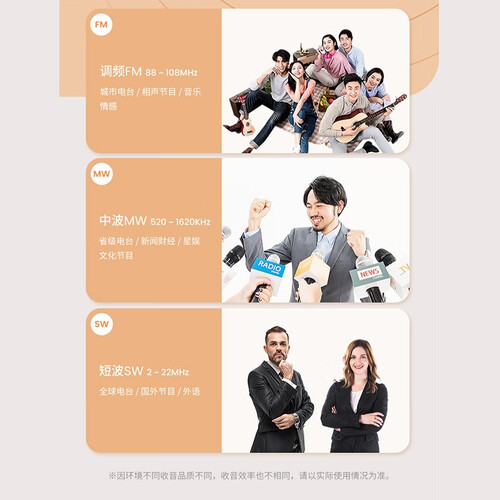 这款收音机拥有全波段收音系统,可收听电台多,功能齐全。拥有多种播放方式,使用更方便,适用于多种环境。