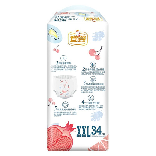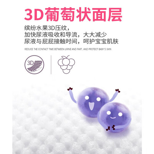弱酸性的表层配方,减少尿液刺激宝宝屁屁,带来舒适的穿着体验。35倍智能吸水,吸收尿液不反渗。