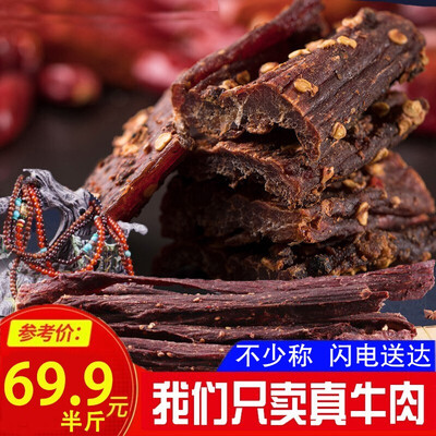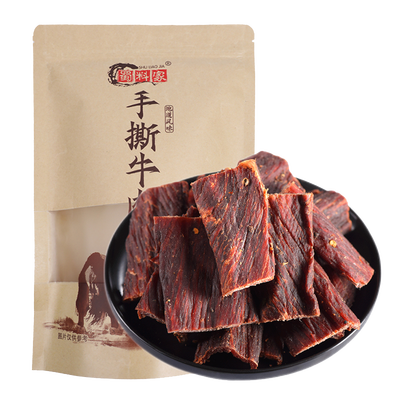 以牛肉为原料做成的牛肉干,肉质鲜美,富含优质蛋白质、脂肪等营养。无添加无牛肉精,不掺淀粉,健康美味。