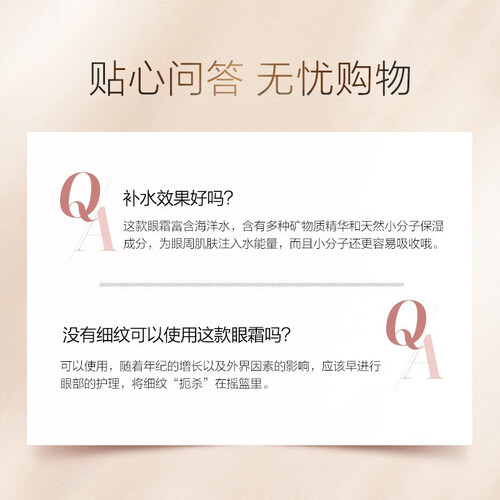 蕴含多种海洋保湿精华,结合清爽无油配方,抚平眼部细纹,眼周肌肤持久弹润丰盈,水润双眸。