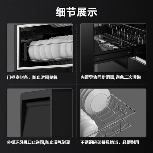搭载智能烘干换气功能,24小时智能换气,让橱柜长效保持洁净干爽。工作过程自动落锁,安全防护,家有小孩也能安全使用。