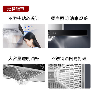 这款大风压油烟机,拥有出色的排烟能力,就连烹饪排烟高峰期也能轻松使用。一键启动热熔洗功能,省时省力,免除手动清洗的繁琐。