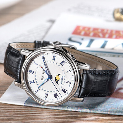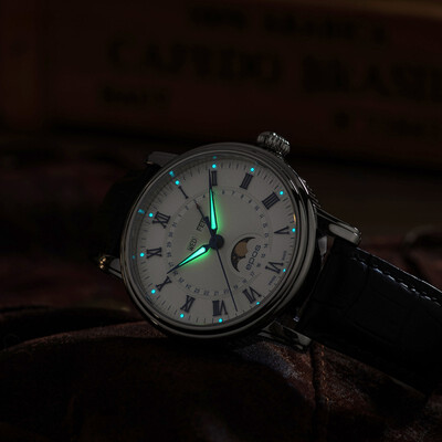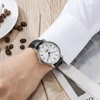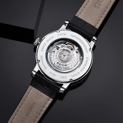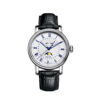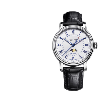 月相显示窗设计,为表盘增添了丰富的层次感,视觉感官更佳,结合蓝钢的指针和罗马浮雕刻度,色调相互映衬,时尚又显雅致格调。