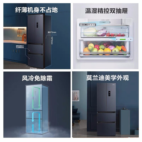 美的 莫兰迪灰双变频多门冰箱