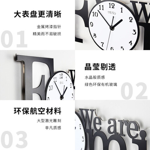 运用字母家的英文装饰,使得时钟变得更有人情味了。选用环保亚克力材料,质量过硬,没有异味,装在家里装的就是安心。