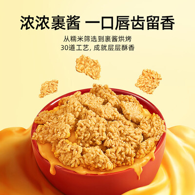 优选的健康食材,经过30道工艺,锁住营养。经典蛋黄味锅巴很受欢迎,甄选圆糯米制作,酥脆中带着粘糯感。