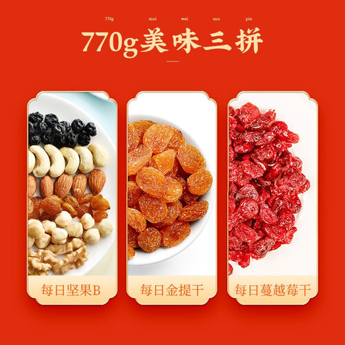 多种新鲜坚果和果仁组合搭配,无添加非油炸工艺制作,美味更健康。内含酸甜可口的蔓越莓干,好吃不腻。