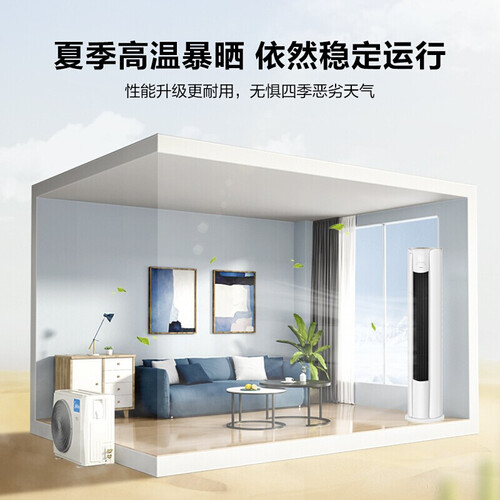 加宽加长出风口设计,全屋均匀送风,覆盖面积更广。内置高效变频压缩机,动力强劲且性能稳定,静音不扰人。