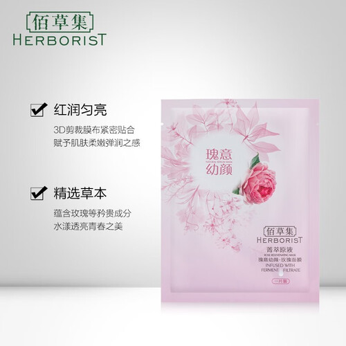 玫瑰精华,抗氧化效果出众,缓解肌肤下垂;膜布清透服帖,营养更容易被吸收;有效补水保湿,一年四季都能用。