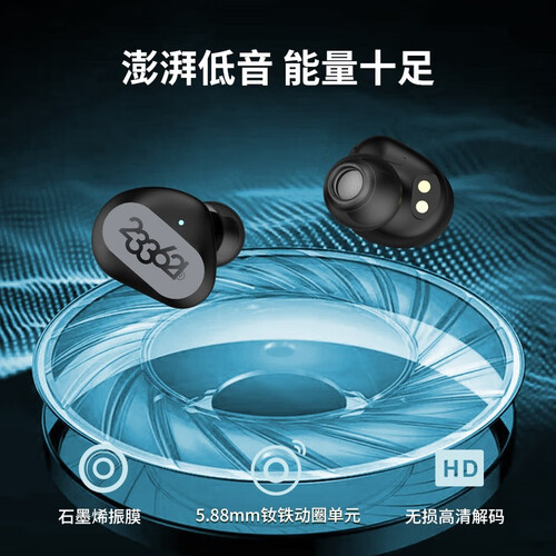 外观设计简约,机身轻巧,佩戴负重感较小,更加舒适。5.88mm高品质钕铁动圈单元,带来澎湃的低音效果。