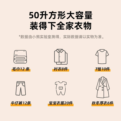 小身材大容量,一次性可以烘干一家衣服。一机多用,衣物与外界隔离,有效防止灰尘、虫类侵入,高效保证衣服的安全性。
