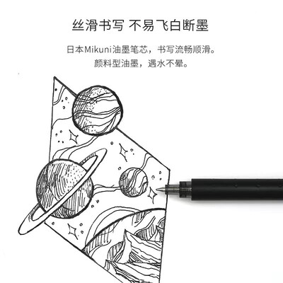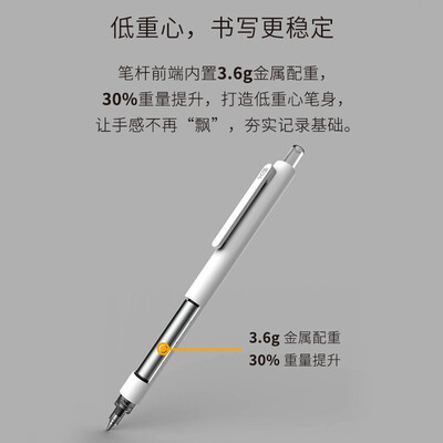 低重心笔头设计,让中性笔顺畅稳固,带来舒适顺滑的视野体验感。按动笔杆设计,按动即可书写,使用便捷。
