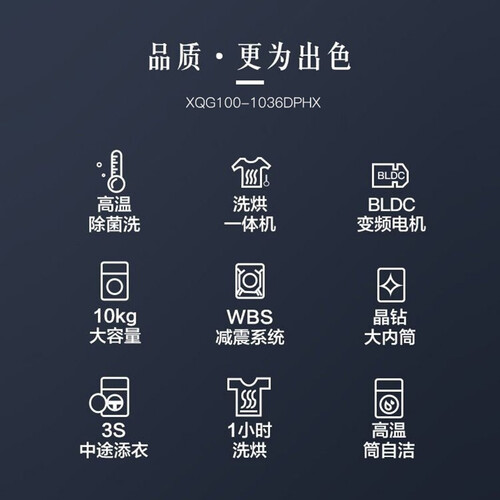 采用BLDC变频电机,输出平稳,低噪声运行,使用体验感更佳。16种洗涤程序,可以满足不同衣物的清洗需求。