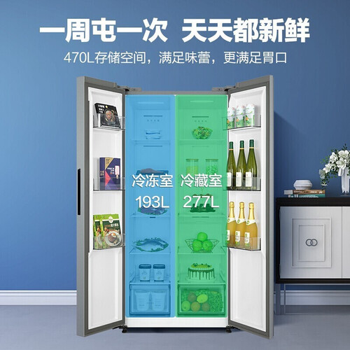 470L对开门存储,大容量独立存储空间,满足全家食材多样性的需求。智能变频电机,一级能效,动力强劲,节能低噪。