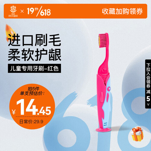 深层清洁牙间隙,减少牙菌斑的产生,保持长效舒适洁净。专为儿童牙龈设计,刷毛柔软,充分按摩宝宝脆弱牙龈,缓解牙齿敏感。