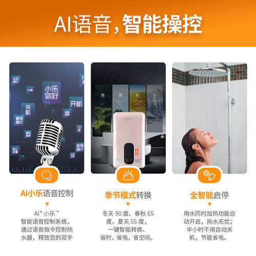 双重恒温控制技术,水温波动范围在±0.5℃,不会忽冷忽热。AI语音智能操控,只需说话就能操控,更简单便捷。