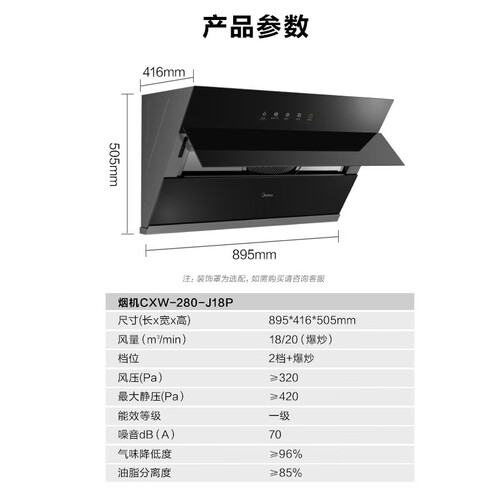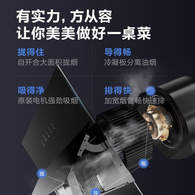 智能wifi操作技术,随时了解净烟状况,便捷实用。高转速电机搭配大吸力,强效排烟,告别爆炒油烟问题。