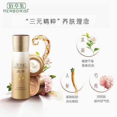 质地非常的柔润,适合干皮使用,拯救换季干燥。含有芍药、茉莉、人参等中草药精华,温和呵护面部肌肤,呈现出紧致的状态。
