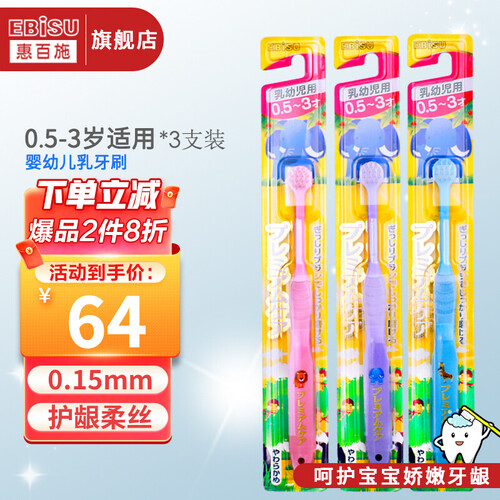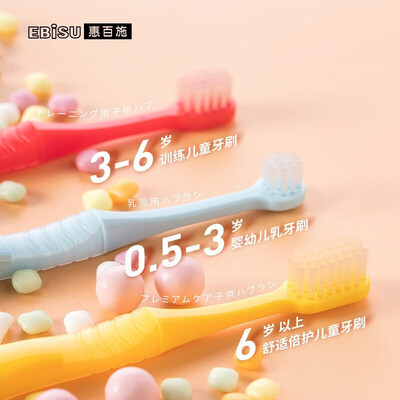 儿童适用的软毛牙刷,质地舒适柔软,倍护稚嫩口腔。刷头采用圆头设计,减少对口腔的刺激。带防滑纹路设计,孩子易于掌控。