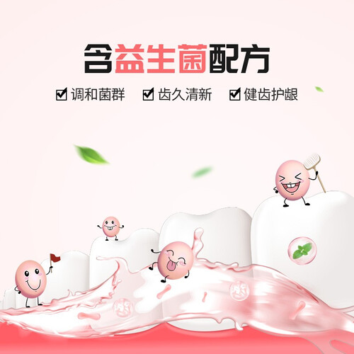 添加了丰富的益生菌成分,可以洁净藏匿污垢,调节菌群,让口气变得更清新。搭配微米级摩擦剂,温和洁净,不会伤牙。