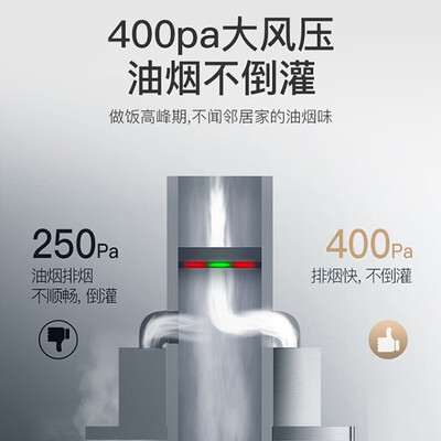 烟机拥有480Pa大风压,无惧做饭高峰期,排烟畅通无阻,不倒灌。灶具台嵌两用,安装不受限,大小户型都适装。