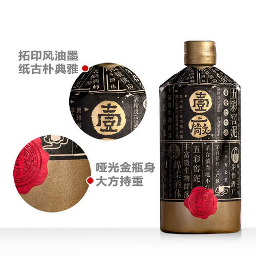 选用当地的小麦和高粱为原料,遵循地道古法酿造工艺,纯正老酒好滋味,回味无穷;拓印风油墨纸包裹哑光金瓶,古朴典雅。
