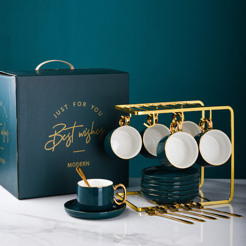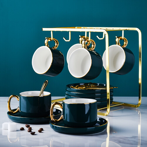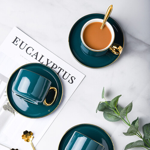 古莜 孔雀绿咖啡杯套装