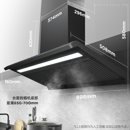 可挥手控制烟机,更加人性智能化,不怕手脏无法按动开关。造型简约大方,采用高雅有质感的黑色为主色调,厨房百搭。