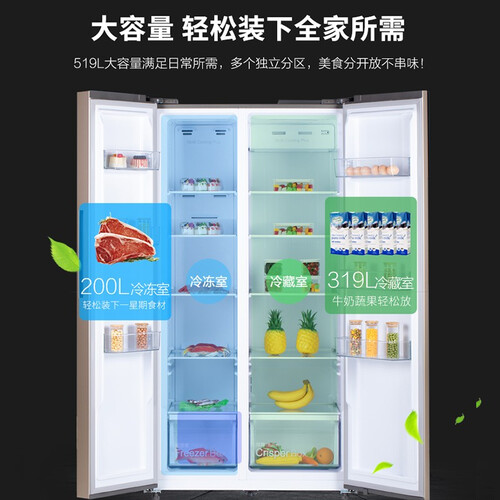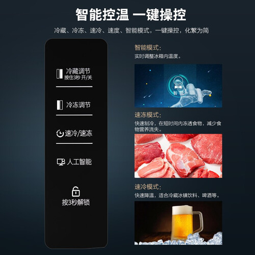 这款冰箱机身纤薄,能够满足嵌入式的装修风格,合理利用家居空间。同时双变频技术,节能环保性能稳定,制冷速度快。
