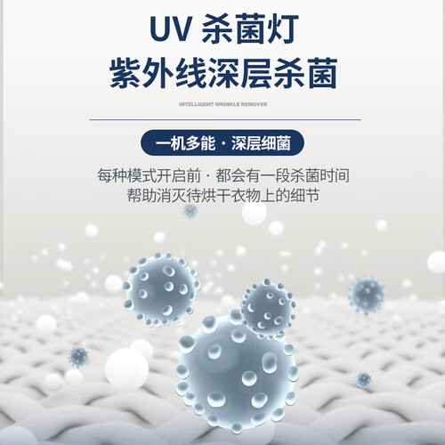 内置排列均匀的六蒸汽孔,能够深度去除衣物褶皱。内置感应系统,当人靠近时,自动停止UV灯工作。