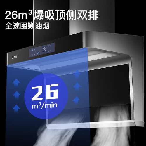 采用顶侧双排结构设计,提供26m³/min强劲吸力,能够一秒瞬吸,不留油烟,内置高功率全封闭电机,运行高速平稳,且静音。