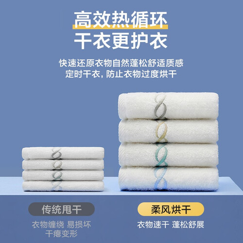 430L大容量的内里,一次性可烘干全家衣物,结合热风烘干的系统,能够均匀分布,让衣物快速烘干。