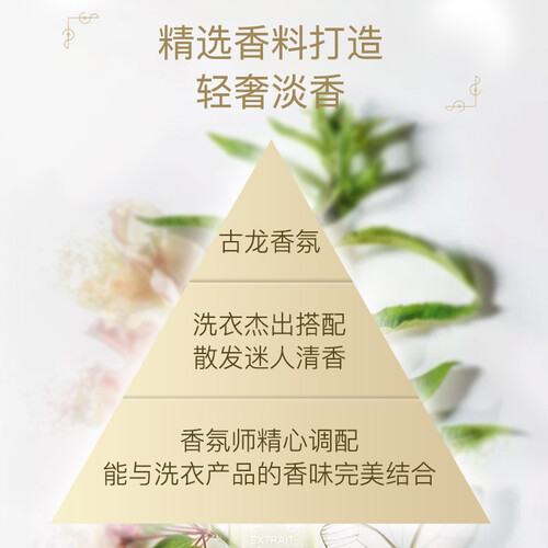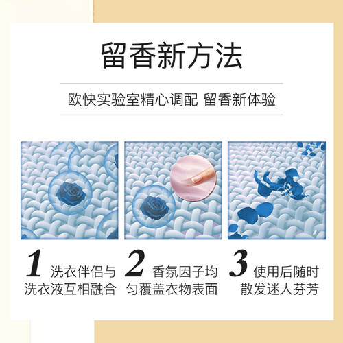 欧洲调香师调配出的香气,味道独特怡人,洗过的衣物放在衣柜,能够持久留香。含有抗菌成分,让衣物彻底洁净。
