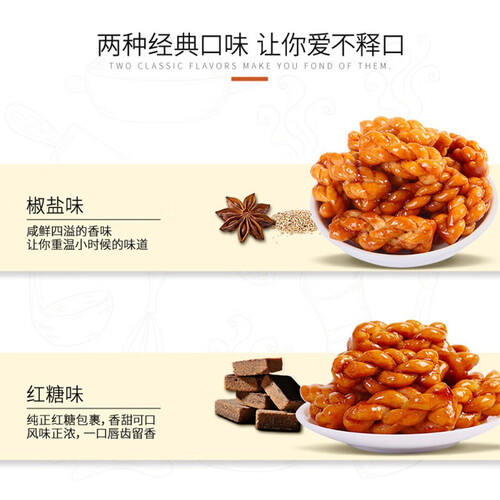 红糖味小麻花,既有红糖甜香,又有小麦麦香。独立小包装,方便加班时携带。独立小包装开袋即食让你随时随地畅食,享受美好时光。