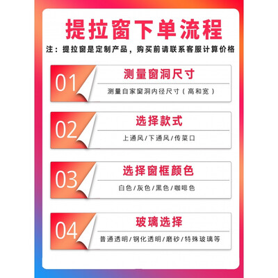 窗户总共有四种颜色,可以根据个人爱好选择。提拉式的设计可以用来当做传菜口,提拉非常轻便,还可以任意停悬,防水性很好。