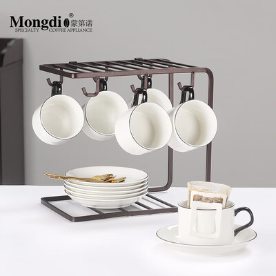 欧式奢华风格设计,人体工学手柄弧度圆润契合手型,杯架收纳整齐不占地方更加实用,配套不锈钢咖啡勺小巧耐用。
