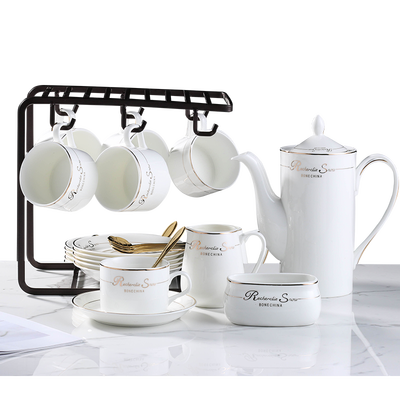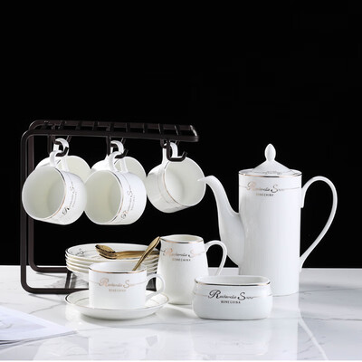 陶瓷金边咖啡具外观简约大气,散发自然的欧式风格,壶身容量约700ml,满足多人同时分饮,居家或办公待客都很不错。