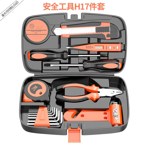 此款工具套组包含17种常用工具,可满足大部分家庭使用需求;工具箱运用提手设计,便于外出携带,提拎轻松。