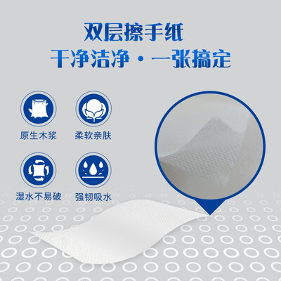 双层纸张设计,更加强韧,吸水快速,抽一张就能擦干双手,节省用量。采用独立包装,便于日常储存,卫生有保障。