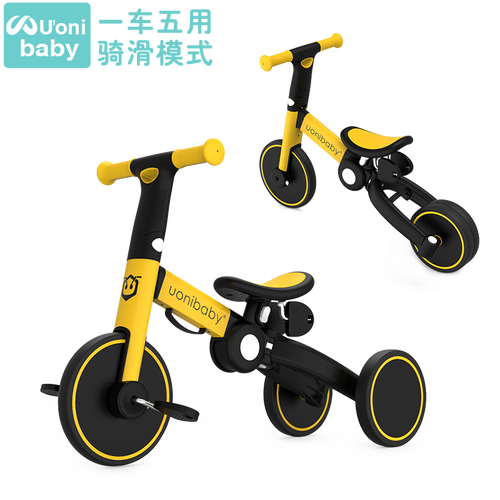 一车多用,让孩子体验不同的乐趣。座椅高低可调,适合不同年龄段的孩子。柔软亲肤手把,握感舒适。闭合轮组,避免夹脚。