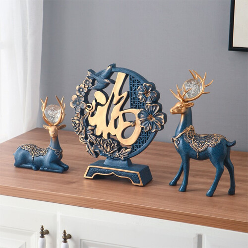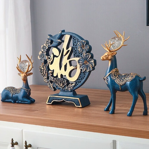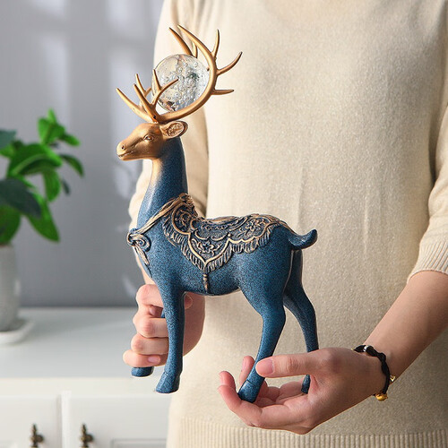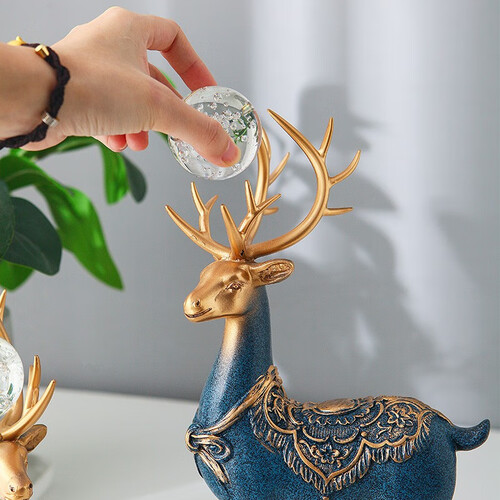 源自中西结合的设计灵感,以象征吉祥、美丽的鹿为题材,其头顶通透水晶球,赋予现代轻奢气息,搭配“福”字摆件,提升生活品位。