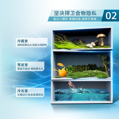 LCD显示和触摸控制,冰箱内部环境一目了然,操作简单方便。设计闭门系统,有效避免门未关好,导致食物储存失败浪费。