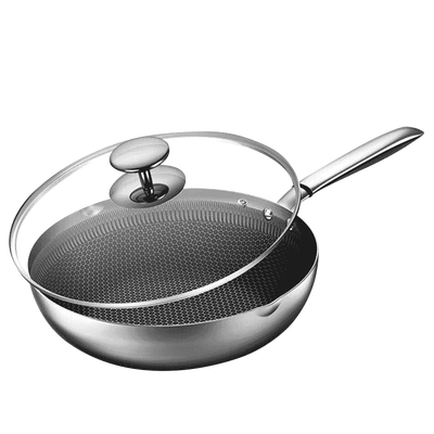 采用食品级316不锈钢材质制作,使用安全健康,不易产生有害物。内里表面蜂窝全覆盖设计,烹饪时食材不易粘锅,容易打理。