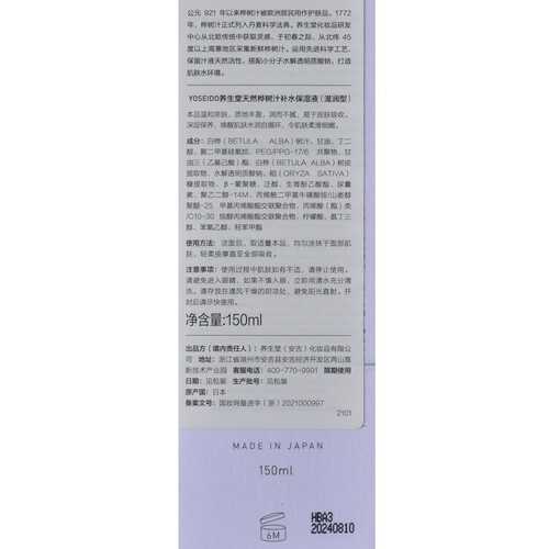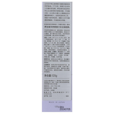 主要成分是天然的桦树汁,富含大量营养,轻松唤醒皮肤活力。同时添加透明质酸、VC等成分,可以保持肌肤水润,轻松打造自然肌。