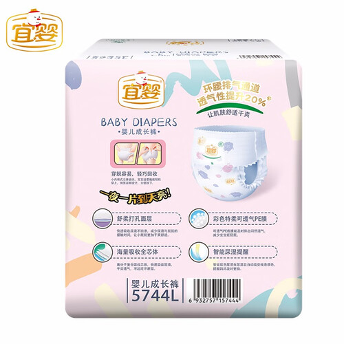 表面采用3D珍珠纹浮点设计,触感亲肤,宝宝使用更透气舒适。内含优质吸水高分子,吸水量更高,长时间佩戴也能保持干爽。