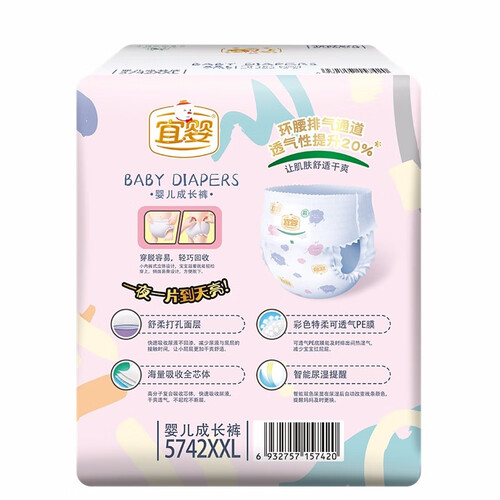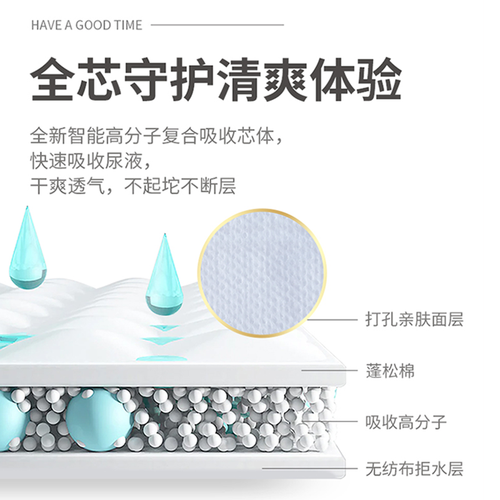 新型的3D柔软面层,触感柔软舒适;内置优质的吸水高分子,有效锁留尿液不易出现渗透的情况。