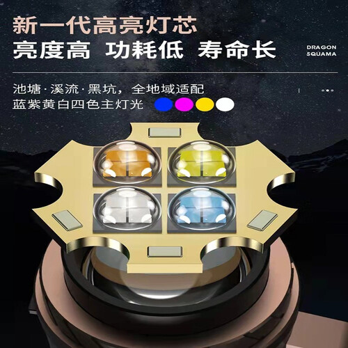 拥有黄、白、紫、蓝四种光源,各种钓鱼场景都有合适的光源选择。搭载智能旋转变焦系统,聚光散光随意调整。
